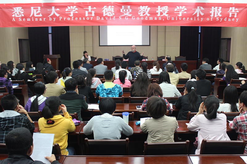5月15日晚,悉尼大学中国研究中心学术主任,澳大利亚社会科学院院士古德曼教授在教学10号楼D区四楼多功能会议厅做了题为“经济变革的文化叙述”的学术报告,报告会由李怀教授主持,我院陆春萍副教授担任翻译。学院领导班子、部分教师,我院研究生、本科生学生等200余人参加了本次报告会。