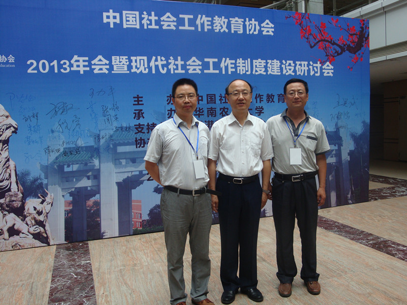 2013年8月18-20日,“中国社会工作教育协会2013年会暨现代社会工作制度建设研讨会”在广州市华南农业大学召开。全国超过200家高校和社工机构的代表约350人与会。我院副院长张润君、社会工作系主任马克林应邀参加了会议。