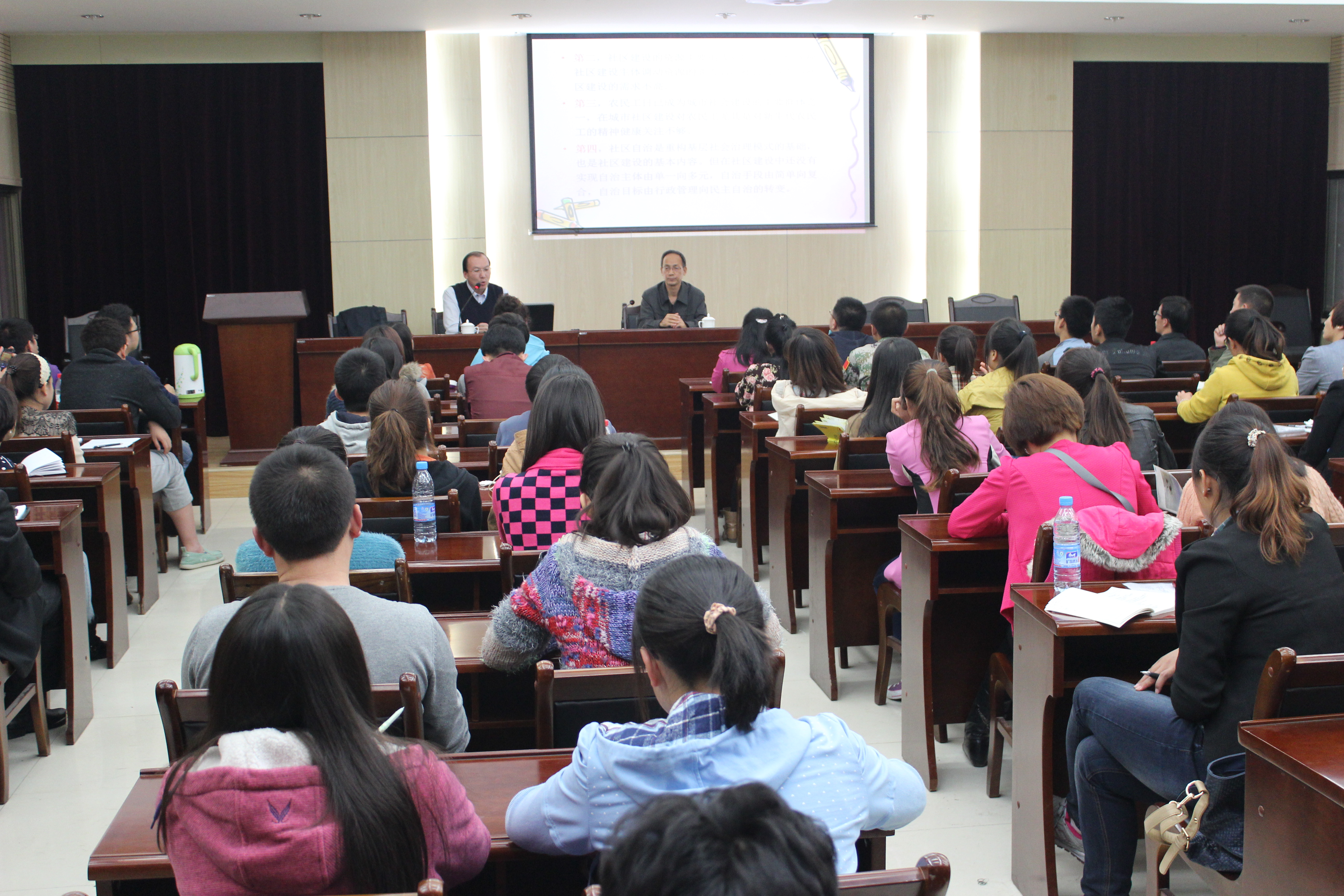 10月17日晚,我院2013年“学术文化月”系列活动讲座在教学10号楼D区四楼报告厅举行,由我院社会工作系教授、社会学研究所所长李怀教授作《社会建设的中国经验与理论自觉》的讲座。学院社会工作系部分老师及研究生和本科生近二百余人聆听了此次报告会。本次报告会由贾应生教授主持。