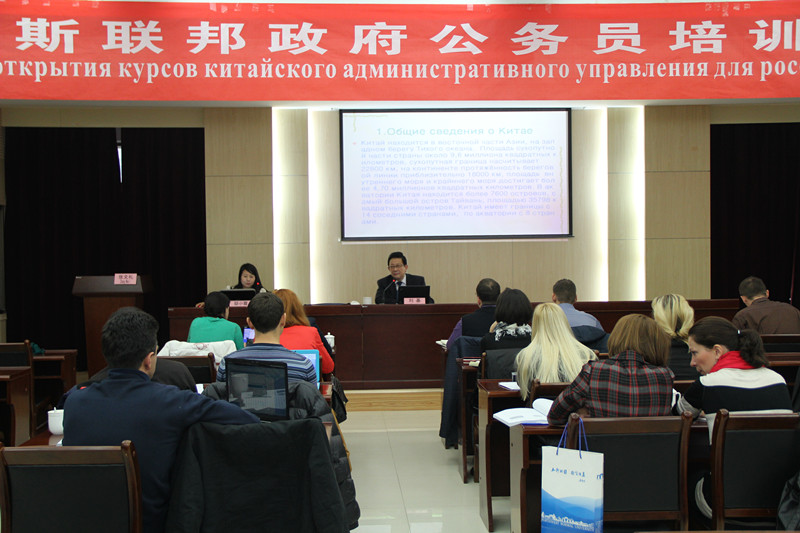 11月10日上午,校党委书记、博士生导师、我院MPA导师刘基教授为俄罗斯联邦政府公务员培训班作了题为《中国基本政治制度与政府职能转变》的专题报告。外国语学院副教授邸小霞博士担任翻译。