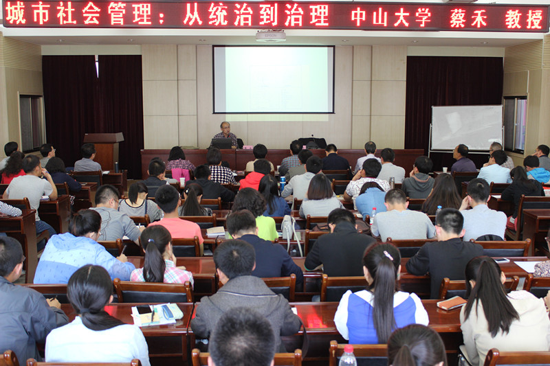 5月8日下午,中山大学社会学与人类学学院院长、城市社会研究中心主任、社会科学调查中心主任、教育部跨世纪优秀人才、博士生导师蔡禾教授应我院邀请于教学10号楼D区四楼报告厅作了题为“城市社会管理:从统治到治理”的学术报告。本次报告会由我院李怀教授主持,学院部分教师及本科生、研究生约140余人听了此次讲座。