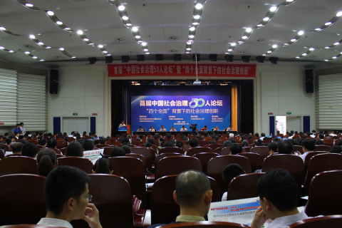 6月6日,首届“中国社会治理50人论坛”暨“四个全面”背景下的社会治理创新会议在中南财经政法大学文泉楼国际学术报告厅开幕。该论坛由民政部基层政权和社区建设司、民政部政策研究中心指导,中国社会治理研究会主办,中南财经政法大学承办,武昌区人民政府、武汉百步亭社区协办。
