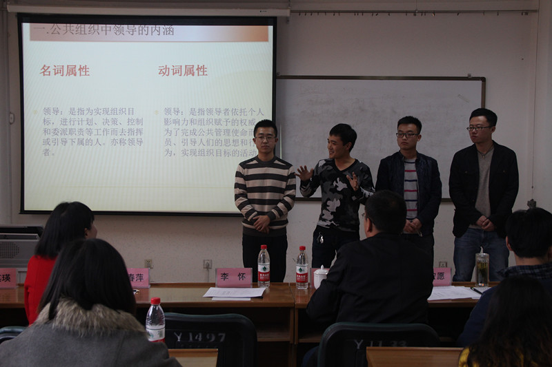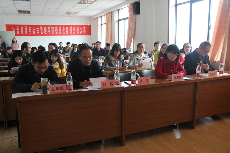 为增强学生对专业知识的应用能力,引导学生积极地将理论与实践结合在一起,达到学以致用的目的。同时,也为促进学生学好专业课,提高学生关注时政热点的积极性,了解公共政策的科学决策过程,认识公共事务管理的复杂性,提高学生观察、分析及尝试解决社会公共管理领域相关问题的能力,2015年11月6日下午,我院在10D—503成功举办了第二届研究生案例分析大赛,拉开了本年度研究生学术月的序幕。我院陆春萍教授、刘磊副教授、王琪英副教授和左宏愿副教授作为活动嘉宾和评委导师出席了本次大赛,张润君院长为本次大赛做了最后总结与点评。