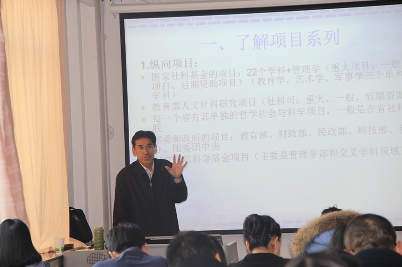 刘校长首先简要介绍了科研项目的系列分类以及如何及时、准确了解各类项目的申报信息。接着,结合自己多年从事科研工作的经验,就如何选题定题向老师们阐述了自己的观点和技巧。最后,刘校长着重就科研项目申报中如何做好论证给老师们作了详细的指导。