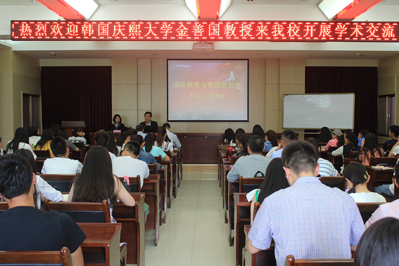 5月30日下午,应我院邀请,韩国庆熙大学技术经营大学院院长金善国教授在教学10号楼D区4楼报告厅为师生作了题为“国际教育与管理新趋势”的专题报告。报告由学院院长张润君教授主持。我院部分教师及本科生、研究生参加了报告会。