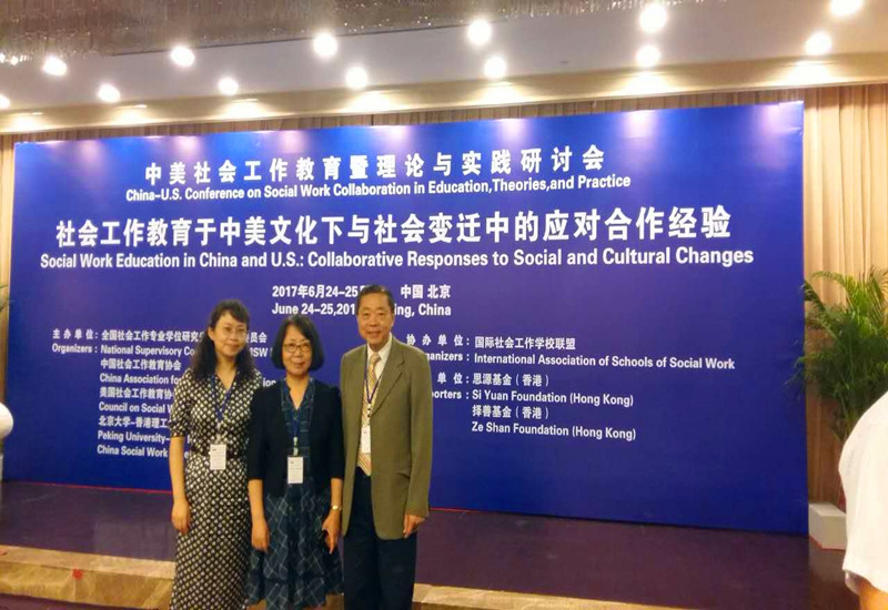 6月24-25日,由全国社会工作专业学位研究生教育指导委员会、中国社会工作教育协会、美国社会工作教育协会、北京大学-香港理工大学中国社会工作研究中心主办,国际社会工作学校联盟协办的“中美社会工作教育暨理论与实践研讨会”在北京西郊宾馆召开。会议主办单位负责人及专家,合作项目评估组专家,中国7个片区和美国7所高校的代表,全国MSW授权高校及其他高校社会工作专业教师,美方社会工作院校的社会工作专业教师等共约200人参会。我院刘永明老师出席了会议。
