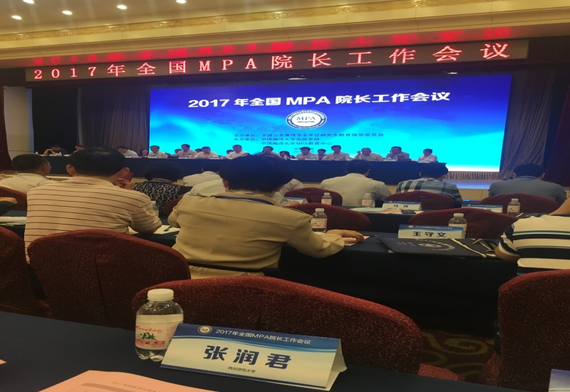 8月25-26日,2017年全国MPA院长工作会议在青岛召开。会议由全国公共管理专业学位研究生教育指导委员会主办,中国海洋大学法政学院承办。教育部学位与研究生教育发展中心主任黄宝印,国务院学位委员会办公室、教育部学位管理与研究生教育司副巡视员唐继卫,全国MPA教指委副主任委员、国家公务员局培训与监督司司长陈群洲,中国海洋大学校长于志刚等领导出席了会议并讲话。我院张润君院长、刘兴主任参加了会议。