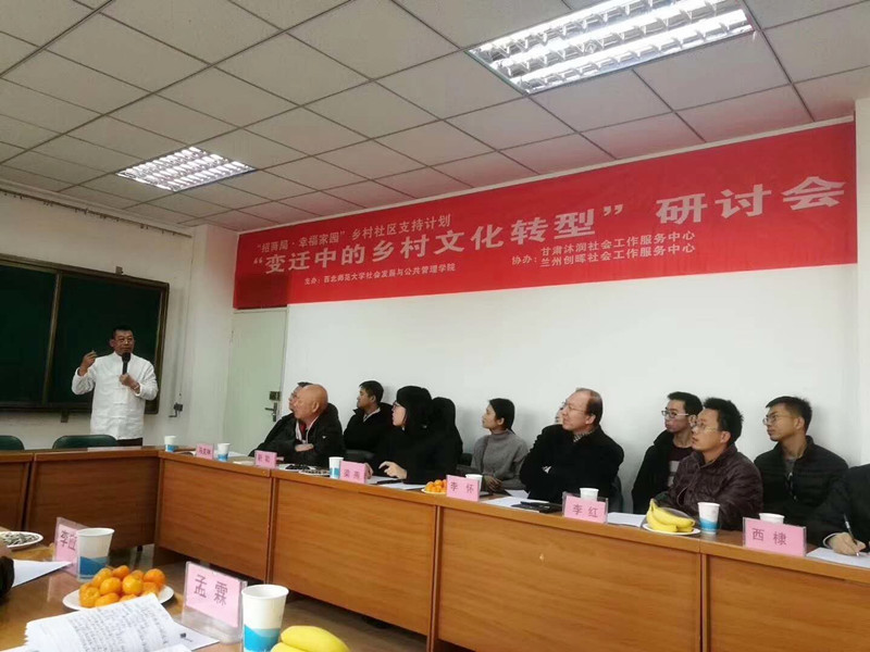 2017年12月23日,由社会发展与公共管理学院主办,甘肃沐润社会工作服务中心、兰州创晖社会工作服务中心联合协办的“变迁中的乡村文化转型”研讨会在英国365公司教学10号楼D区503举行,关注乡村文化转型的高校教授、农民代表、诗人、艺术家、社会组织、基金会代表与我院研究生等三十余人参会。