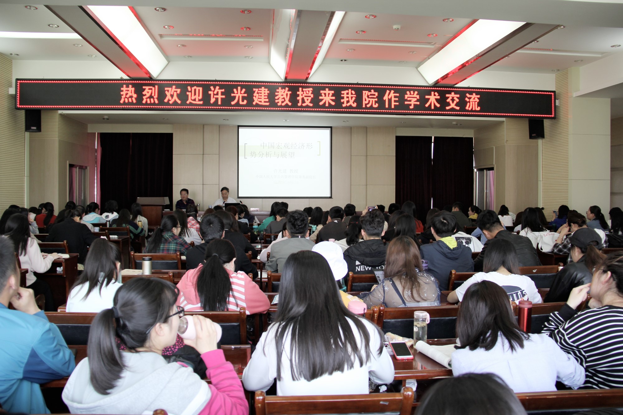 2018年5月3日,中国人民大学公共管理学院常务副院长、教授、博士生导师许光建老师应学院邀请在10号楼D区四楼报告厅作了题为《当前我国宏观经济形势分析和展望》的学术讲座。本次讲座由我院副院长孙健教授主持,学院师生共计200余人聆听了讲座。