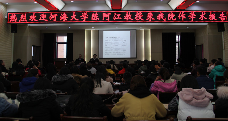 2018年11月14日下午,应社会发展与公共管理学院邀请,河海大学社会学系主任、博士生导师陈阿江教授,在10号教学楼D区四楼报告厅作“环境社会学的研究议题与方法——研究历程回顾”的学术报告。我院全日制硕士研究生和社会工作专业本科学生约120人参加聆听了这场学术报告。李怀教授主持学术报告。