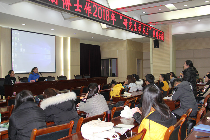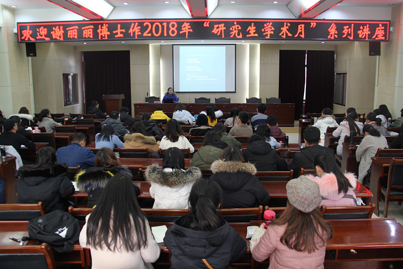 2018年12月14日下午,我院在10号教学楼四楼报告厅开展2018年“研究生学术月”系列讲座,青年教师谢丽丽博士作“学位论文的选题和实地调查”的学术讲座。我院全日制研究生约120人参加聆听了这场学术报告,报告由李秀英副教授主持。