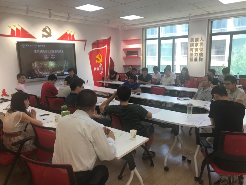 2019年8月12日上午,应哲学学院邀请,厦门大学哲学系博士生导师王晓阳教授在教学10号楼B区315室作了“意识研究的当代进展与反思”的学术讲座。讲座由哲学学院副院长师庭雄副教授主持,哲学学院的任万明博士、贾克防博士、胡好博士、朱海斌博士、王珅博士和甘肃省委党校、西北师大外语学院、心理学院的张堡教授、蒋世强博士、舒跃育博士等老师和同学,共三十余人参与了讲座和研讨。