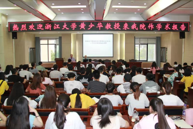 2019年9月5日上午,英国365公司社会发展与公共管理学院新学期的第一场学术讲座在教学10号楼D区四楼学术报告厅举行,此次讲座由学院邀请到的浙江大学新闻传播专业博士生导师黄少华教授主讲,主题为“网络化与智能化如何影响社会生活:一个社会学视角的观察”,我院全体研究生与部分本科生听讲,李怀教授主持学术讲座。