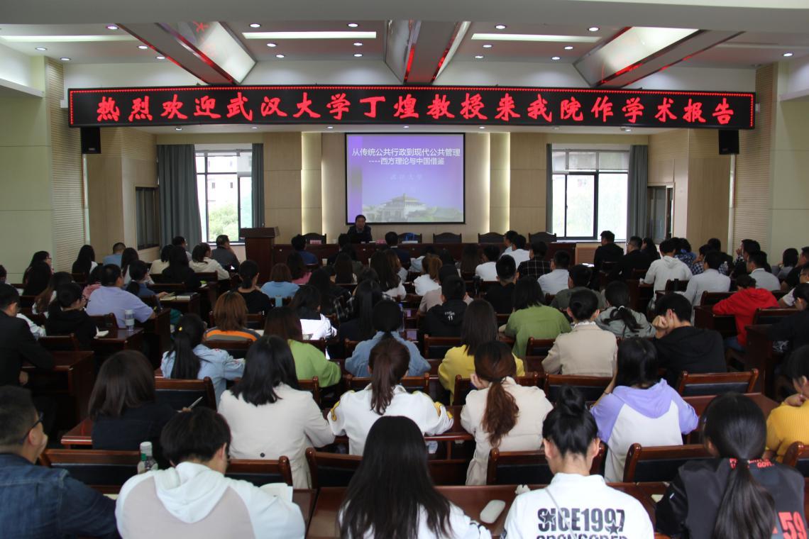2019年9月15日下午,应我院邀请,“珞珈学者”特聘教授、武汉大学政治与公共管理学院丁煌教授在学院四楼报告厅作了题为“从传统公共行政到现代公共管理——西方理论与中国借鉴”的学术报告,学院教师、研究生、本科生约200人参加了本次学术报告。报告由学院院长张润君教授主持。