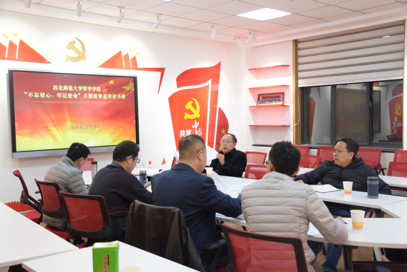 10月31日,学院在教学10号楼B区315党员活动室继续开展“不忘初心、牢记使命”主题教育读书班夜校学习。学习会上,大家集中学习了《中国共产党章程》《中国共产党纪律处分条例》《关于新形势下党内政治生活的若干准则》等内容,并研究落实哲学学院主题教育检视问题清单和主题教育征求意见建议表。学习会由党总支书记李光华主持,学院领导班子成员、学院党总支委员、办公室主任、党务秘书等人参加了学习会。