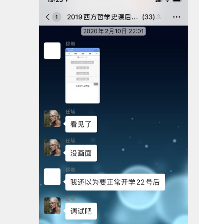 赵桢(2017级哲学本科1班):在网上上课已上了两天了,就我个人来说,我觉得线上教学很不错,首先线上教学和在教室上课大致没什么差别,都可以很好的聆听老师的课程讲述,其次这样以班级为单位的集体学习可以对我的学习起到督促作用,比自己在家自学的效果要好很多。岁月静好,是有人在为我们负重前行。网上教学其实困难很多,如雨课堂系统容易崩塌,老师们就不得不另寻他法来保证教学顺利进行。在疫情爆发的这一特殊时期,所有人都在砥砺前行,相信风雨过后便是彩虹,我们一定会在和煦的阳光下再次相遇。