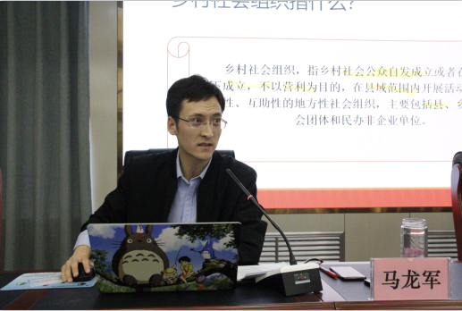 4月22日下午,我院青年博士马龙军在10D四楼学术报告厅作学术讲座,讲座主题为“中国乡村社会组织发展的历史与现状”,参加此次讲座的为我院部分研究生和本科生,本次讲座由李怀教授主持。