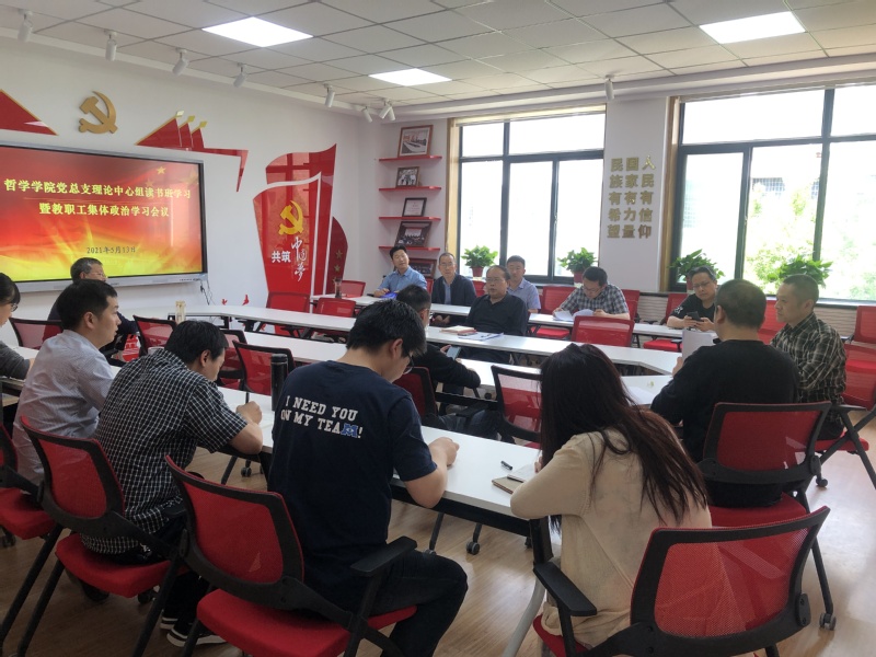 2021年5月13日下午,哲学学院理论学习中心组在10号教学楼B区315党员活动室召开党史学习教育集体学习会。会议由李光华书记主持,学院理论学习中心组成员参加本次会议学习。