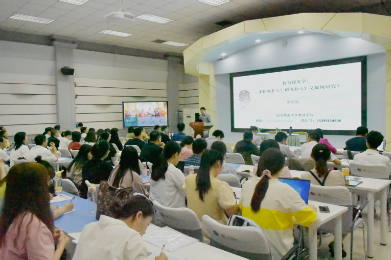 最后,在“教育现象学如何研究”这一部分,熊华军老师指出,教育现象学研究的第一步是先验还原,即中断自然性思维,直接面向学生真实的生活世界;第二步是本质还原,即进入生活世界直观教育的“绝对的、明晰的被给予性”,一方面意味着研究者要参与到丰富的生活中去,另一方面意味着研究者应积极地探究生活经验的所有形态和方面。其次,教育现象学要进行事件化描述,这种描述不是对教育现象的全景描述,而是对教育现象在确定的视域中的描述,即对教育事件的描述。然后,教育现象学还要进行意义化诠释,即将教育转为教化,引导教师让学生作为人自身和成为人自身,在意义化诠释维度上,教育现象学研究是实践教化与理论教化的统一。最后,教育现象学还要进行叙事化写作,叙事化写作是通过文字的聚集“尽可能地接近和还原生活体验”,写作即反思,教育现象学的写作一方面是为了更好地指导研究者本人和读者的教育行动,另一方面是为了更好地坚守教育底“理”的责任。