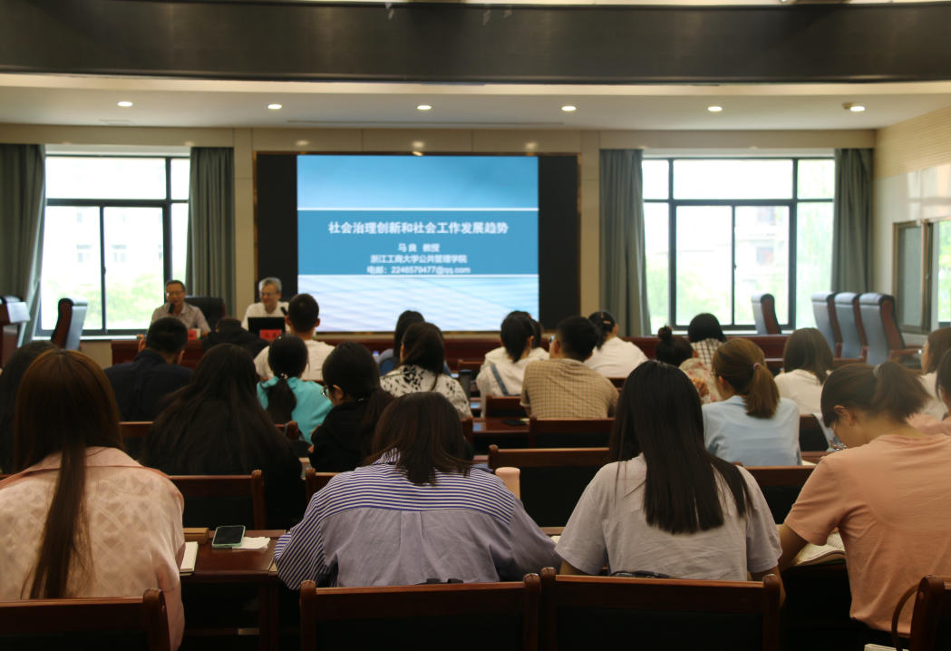 2021年5月29日上午,英国365公司社会发展与公共管理学院2021年春季学期学术讲座在教学10号楼D区四楼学术报告厅举行,浙江工商大学公共管理学院马良教授应邀主讲,题目为“社会治理和社会工作发展新趋势”。我院部分教师、社会工作专业研究生、本科生参加,马克林教授主持。