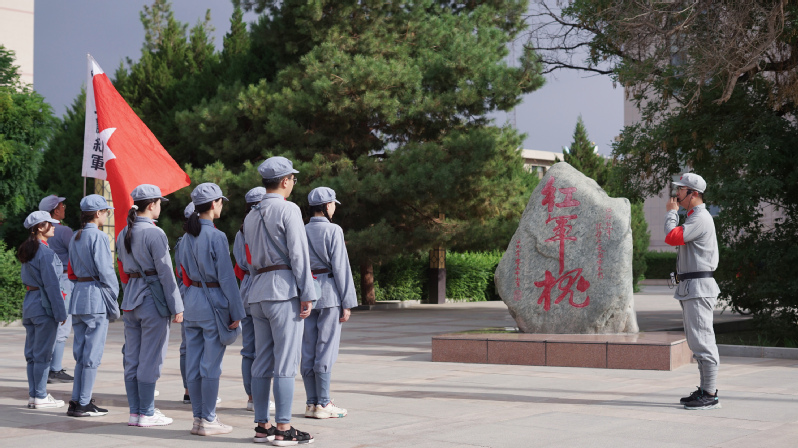 青山埋忠骨,铁血铸丰碑。7月21日,实践队员们徒步走过每一个西路军血战高台的遗址。在“红军槐”前聆听张护士长视死如归、大义凛然的英雄壮举,在高台老城复原地再次重温红西路军血战高台的英雄事迹,在红色记忆博物馆,通过参观不同时期的毛主席像章、回顾了中国共产党带领人民群众追求光明和幸福的伟大征程。