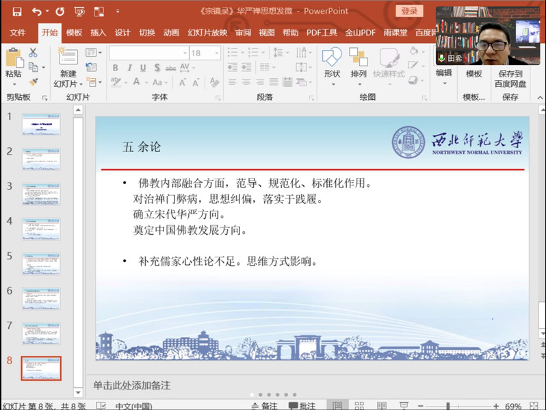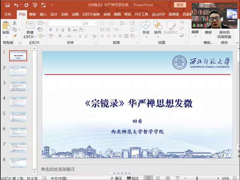 12月5日下午,田希博士通过线上会议的形式为我院师生作了题为“《宗镜录》华严禅思想发微”的学术报告。会议由哲学学院张海龙博士主持,学院广大师生及校内外哲学爱好者共同参加此次报告会。