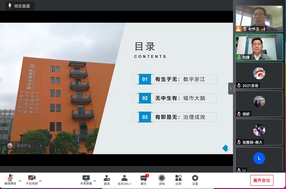 2022年5月10日晚,社会发展与公共管理学院邀请浙大城市学院刘靖副教授开展题为“城市大脑赋能城市治理现代化——杭州城市大脑建设实践思考”的线上学术讲座。此次讲座由我院杜怀玉副教授担任主持人,二百余名校内外师生参加听取了该讲座。