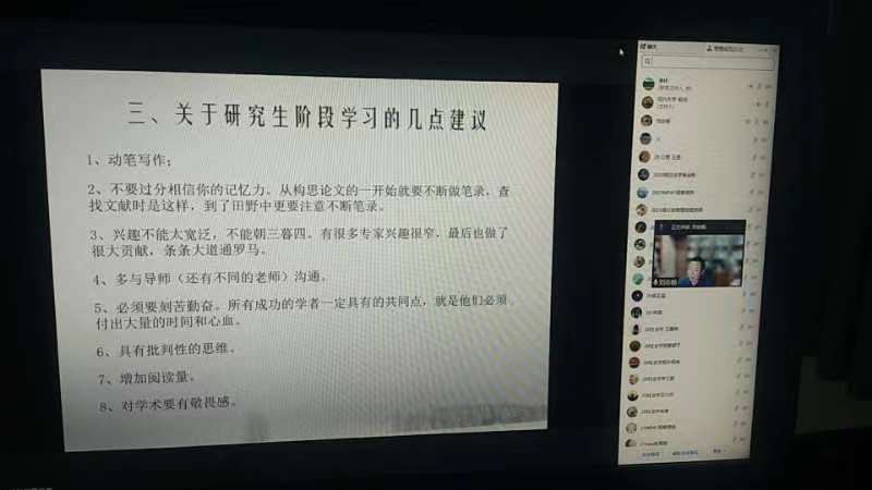 紧接着,刘老师讲述了文献资料的收集和文献综述等相关问题。刘老师指出,在收集文献资料时,不仅需要保证文献资料的全面性,同时也需要对资料加以甄别,理性选择和运用文献。同时他也再次强调,文献综述并非是简单的资料堆砌,而是要指出前人研究的创新和不足,同时反观自己的研究,明确自己的研究的价值和必要性。随后,刘老师针对研究生阶段的学习给出了一系列具体、实用的建议,如动笔写作、确定研究方向和旨趣、增加阅读量、培养批判性思维等。