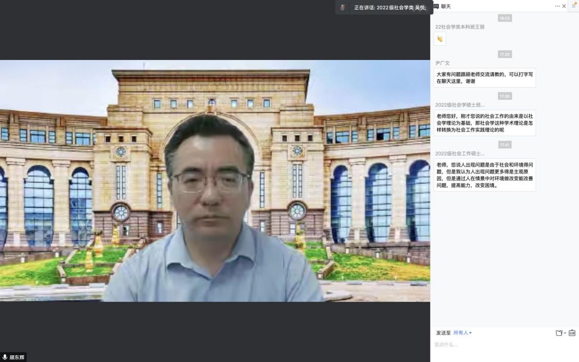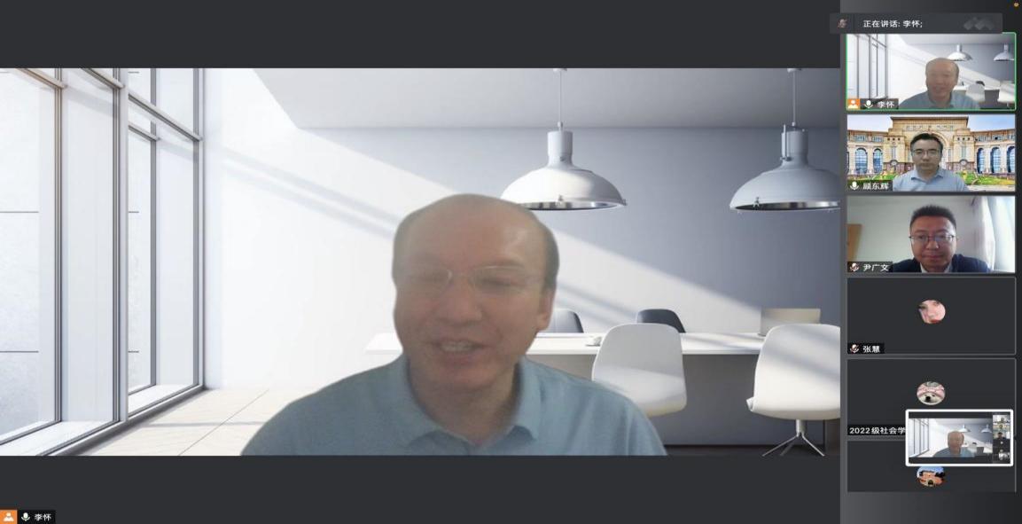 讲座进入尾声,同学们向顾老师积极互动提问,顾老师也一一作了解答和回应。最后,李怀教授对本次讲座内容进行了总结,他充分肯定了讲座中社会工作的三项功能,他强调社会工作的专业使命其一是助人,其二是使社会更加美好,其三是为自身增能,个体在与社会的互动之中更可以把握和改善与社会互动的规则。李老师再次感谢顾老师的精彩讲座,并表示待疫情平复,期待顾老师再次为我院师生带来精彩的学术报告。