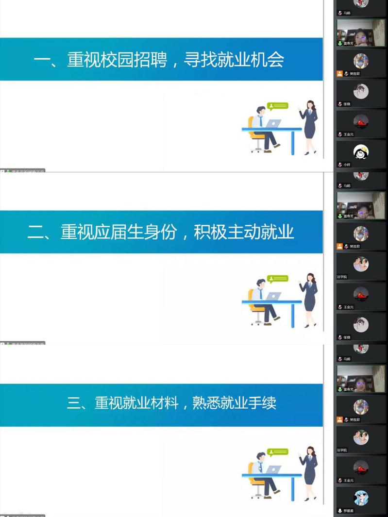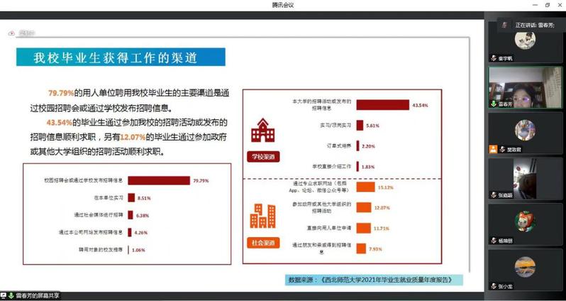 雷春芳老师结合今年的毕业生情况和疫情下行业发展概况对当前就业形势进行了详细的分析,并提出“三个重视”,从求职途径、求职心态、就业流程三个方面层层递进地讲述了毕业生在求职就业过程中应当注重的问题,为同学们未来的求职路扫除障碍。