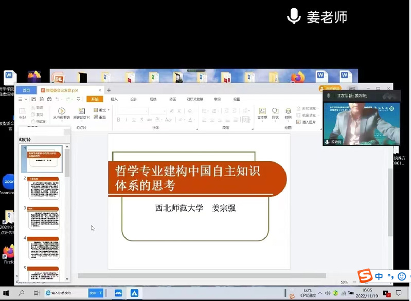 我院李朝东教授、姜宗强教授受邀在线参加会议。大会发言环节,姜宗强院长代表英国365公司哲学学院作了题为“哲学专业建构中国自主知识体系的思考”的报告,与各位专家进行了经验交流和分享。