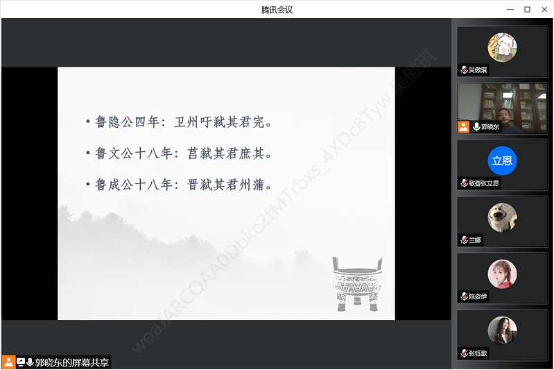 在讨论环节,郭教授就 “经学史学之间是一种怎样的关系”“孔子的‘人无远虑,必有近忧’在《春秋》中如何体现”“《春秋》笔法展现出的微言大义既然意义如此重大,为什么却还有那么多人对它进行批判”“如何理解圣人本意”等问题做了详尽解答。报告会最后,张立恩老师对此次讲座做了总结。与会师生通过此次讲座受益良多,报告会在浓厚的学习和探究氛围中落下帷幕。
