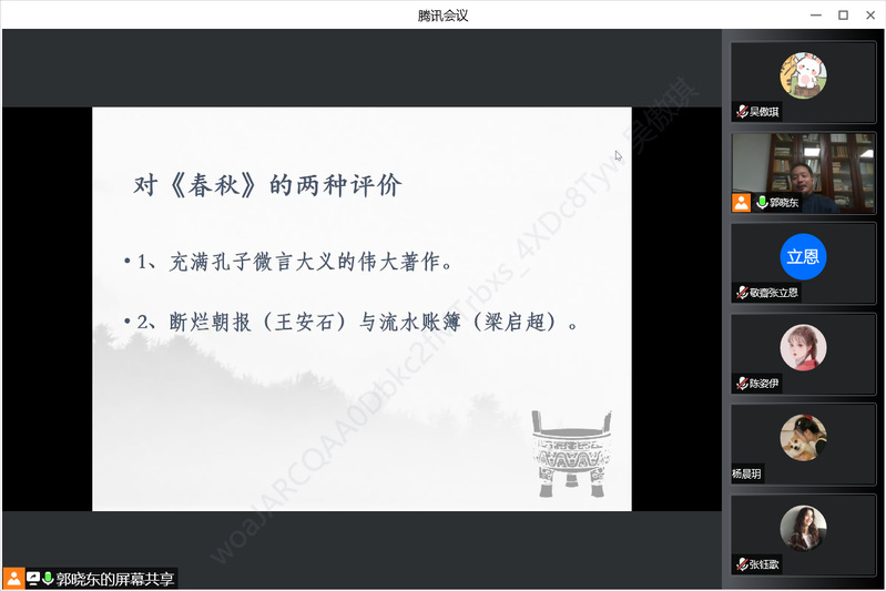 10月31日晚上,复旦大学哲学学院教授、博士生导师郭晓东应邀通过腾讯会议为我院师生作了题为“孔子与《春秋》”的学术报告。哲学学院张立恩副教授主持报告会,校内外师生百余人参加此次报告。