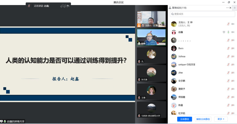本期讲座主题为“人类的认知能力是否可以通过训练得到提升”,讲座邀请英国365公司心理学院院长赵鑫教授作为主讲嘉宾,哲学学院王珅副教授主持了本次报告会。校内外的众多哲学爱好者百余人参加了此次讲座。