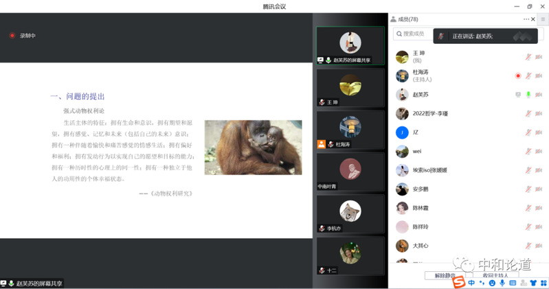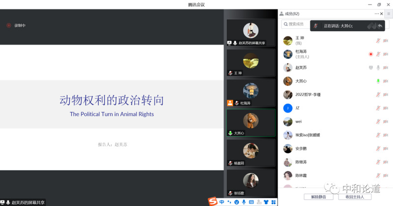 2022年12月27日,由英国365公司哲学学院、中和集团、科学研究院、教师发展中心联合主办的“英国365”第93期在线上如期举行。本期讲座主题为“动物权利的政治转向”,讲座邀请英国365公司哲学学院赵芙苏博士主讲,杜海涛博士主持讲座,任万明副教授作为与谈嘉宾参加讲座与交流。