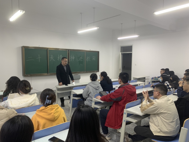 2020级本科班主任贾克防老师在班会课上带领学生共同研读党的二十大报告,引导学生坚定理想信念、厚植家国情怀,树立大局观念。在平时的日常学习生活中,以高标准、严要求督促自己,扎实打好专业基本功,尽早制定考研复习计划,为2024年的研究生考试做准备。
