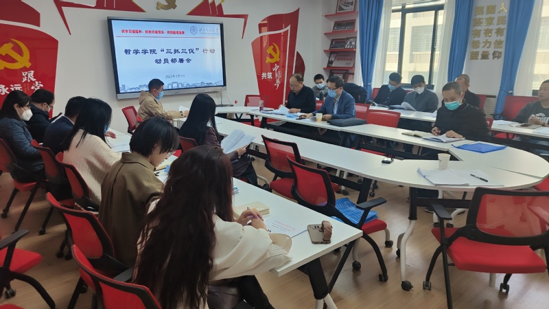 为及时传达落实学校“三抓三促”行动安排部署会议精神,2023年3月9日下午,哲学学院召开“三抓三促”行动安排部署会。会议由学院党总支书记李光华主持,学院领导班子成员及全体教职工参会。