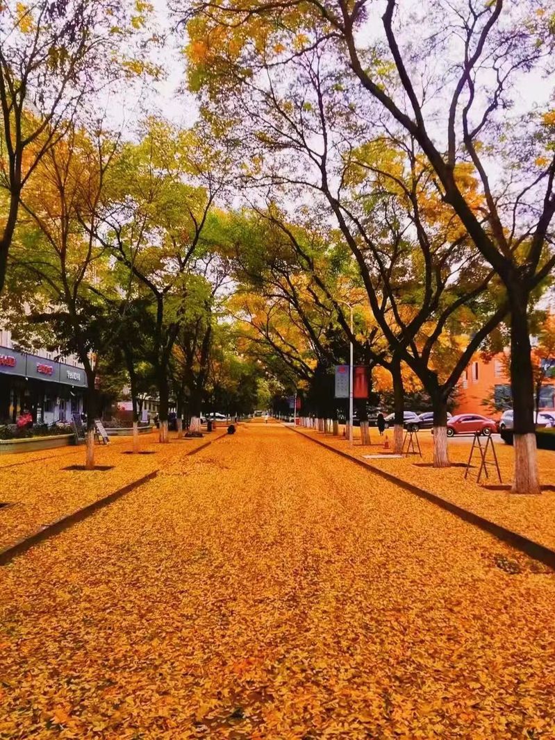 2021级本科生朱宇轩:“十一月深秋,寒风瑟瑟,空气凉爽而清新。校园里落叶缤纷,主干道上铺了一层金色的落叶,成为校园里一道靓丽的风景线。疫情的影响让校园显得格外静谧,无人打扫,恰恰给我和秋天多留了一些时间。世界很安静,那些阳光斜照下的落叶,在风中轻轻摇曳。迎面而来的微风,吹散了我心头的烦忧,让我感到一种久违的轻松。”