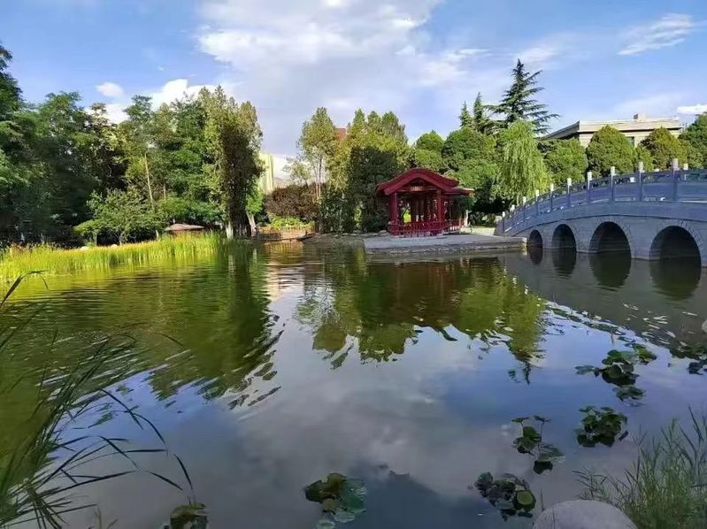 2022级本科生冯燕婷:“夏日的晴空是灿烂的,天是那样的蓝,日光是那样的强烈,天上地下处于一片耀眼的光明之中。湖面碧水波漾,和郁郁葱葱的翠松绿柳恰然相接,白云倒映,与荷叶水草和然相融,桥与亭立于其中予人视觉冲击。这是独属于师大的夏色,是属于每一位师大学子的夏日回忆,是我们每个人记录着或忽略着的美好瞬间。”