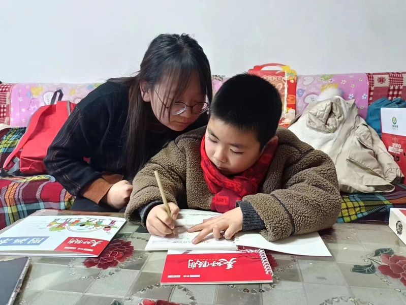 2023年新春,我与家乡三位小学生结成“美好假期”实践小组,在两周的实践过程中,开展了书法、绘画、贴对联和猜灯谜等活动。实践经历美好难忘,硬笔书法让我们一起领略汉字魅力和古诗雅韵;毛笔书法让我们在方寸之间懂得做人的道理和团结的力量;在水彩画中,孩子们眼中五彩斑斓的家乡未来画卷徐徐展开;贴对联、猜灯谜,热闹红火的过年氛围被打造出来;劳动最是光荣,打扫家庭卫生,和家里的爷爷奶奶围坐说说心里话。做社会实践项目,抱定宗旨很重要,要时刻问自己一句:我能给孩子们带来什么;坚持也很重要,过程不会轻松,但只要坚持就一定会得到美好的结果,就像花籽从泥土中扎根会开出芬芳的花朵。