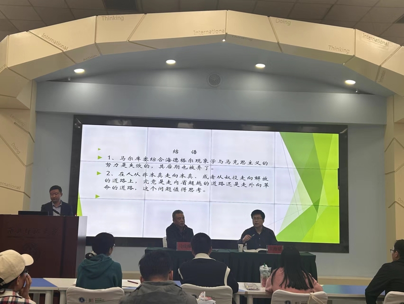 本次讲座由四部分的内容构成:问题的提出、哲学理念范式转向、此在存在与历史人的存在以及马尔库塞对现象学-辩证法批判性重构。在讲座的第一部分,马俊峰教授主要讨论了现象学与马克思主义理论结合的缘由。在讲座的第二部分,马俊峰教授介绍了传统哲学到具体哲学转向的主要观点,具体地阐述了真理观和具体哲学的论点。在这一部分中,马俊峰教授深入阐述了在真理层面上“对‘人’的理解”这一问题对于传统哲学的超越。具体哲学是一种理论与实践统一的哲学,它的目标是使此在本真地存在。马尔库塞以具体哲学的视角对海德格尔的哲学进行了改造,他强调现实的人的活动,而不是抽离的人的活动的抽象理论,哲学应该关注全部具体的斗争和困境。另外,对于具体的“人的活动”的研究也应该放在整体当中去,马尔库塞认为应该将“对象完整得纳入视野”,这构建了马尔库塞的个人与社会的二元辩证关系。个人不能脱离社会,也不应该臣服于社会的奴役;社会既不能没有个人,同样也不应该压抑社会中个人的存在。