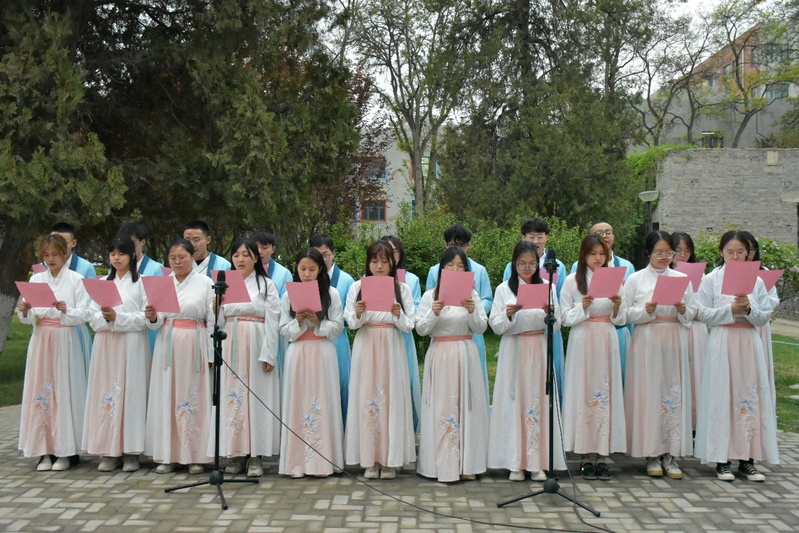 4月23日,学院在云亭苑组织开展了第二十一届“丁香花开”诗词诵读展演,来自5个团支部的同学们通过唱、舞、演、诵等方式以中国古典诗词经典名篇主要内容,精心排演了一台丰富多彩的节目。活动现场还进行了“飞花令”小游戏,以“花”为主题的诗词歌赋在观众的传诵声中此起彼伏。