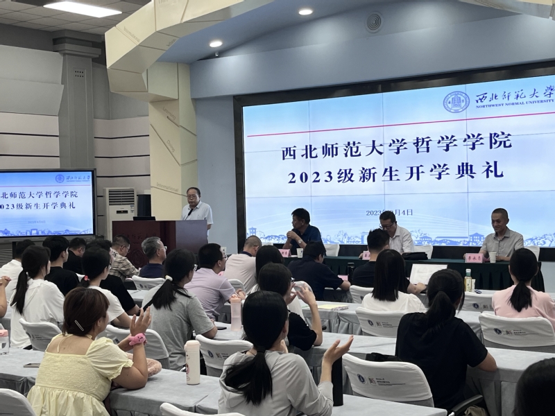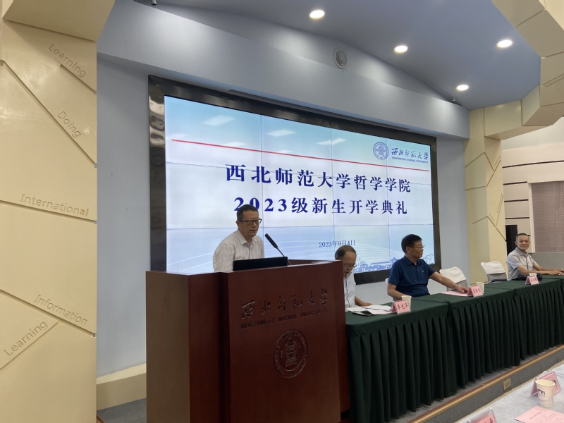 贺更粹教授代表学院教师发言并作教师寄语,提出:哲学离我们并不遥远,它存在于我们生活的方方面面。同时建议同学们从《中庸》《大学》等经典中汲取思想养分,在学习之前先学会如何立身行事、如何做人。