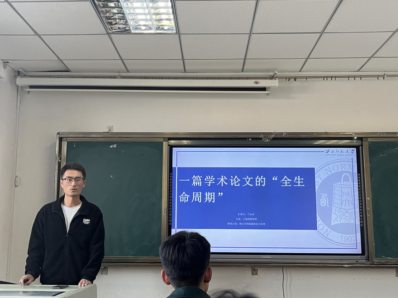 其次,我院土地资源管理专业硕士研究生兰永真同学,讲述了学术论文从开始确定选题到撰写、修改、投稿、再修改、再投稿,最终到正式发表的全过程。他以自己所发表文章为例,详尽介绍了论文理论基础、研究设计(研究区概况、数据来源、研究方法)、结果与分析等方面的写作方法。