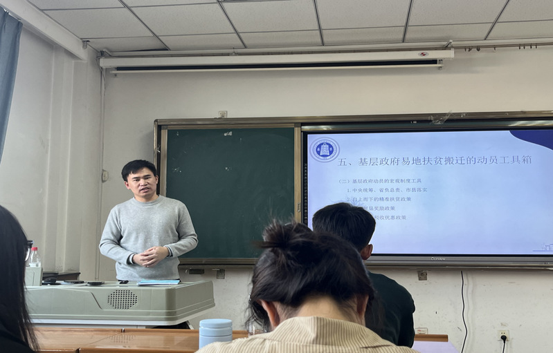 首先,攻读我院西北地方治理专业的博士研究生宋帮福同学,他以中国以往的扶贫实践经验、脱贫攻坚及乡村振兴等作为研究背景,基于此提出该研究的中心问题是:以秦巴山区连片贫困区之一的陇南易地扶贫搬迁个案为研究对象,探究基层政府动员村民易地扶贫搬迁的社会基础和动员过程。他从七个方面解析了自己的文章,并分享其在收集田野资料过程中所遇到的问题和应对策略。