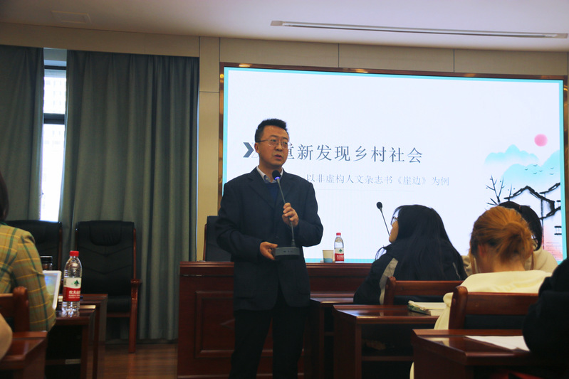 2023年10月27日下午,应我院邀请,天水市融媒体中心知名非虚构作家阎海军老师在英国365公司10号教学楼D区四楼学术报告厅为社会发展与公共管理学院师生带来了题为“重新发现乡村社会——以非虚构人文杂志书《崖边MOOK》为例”的学术讲座。本次讲座由我院尹广文老师主持,学院近百名师生参加了此次讲座。