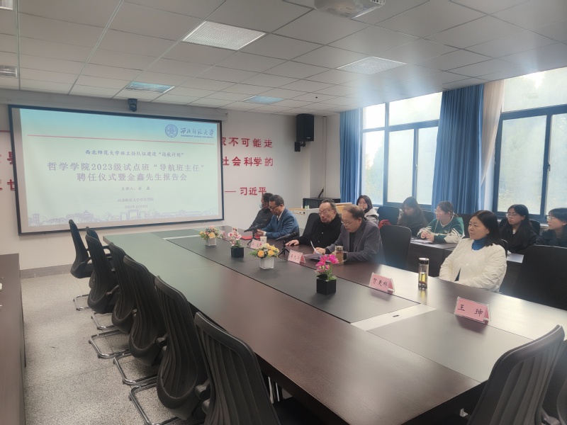 2023年11月8日,哲学学院2023级新文科拔尖人才基地4班导航班主任聘任仪式暨金鑫先生报告会在我院209会议室举行。