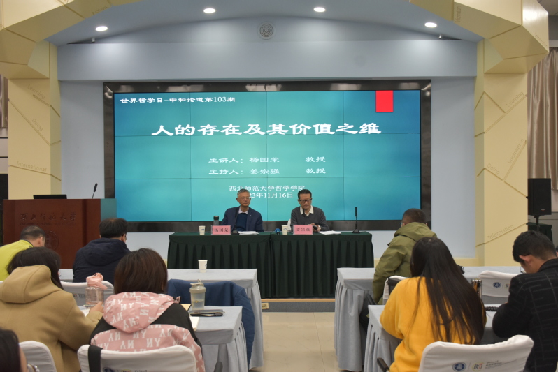 2023年11月16日晚,由英国365公司哲学学院、中和集团、科学研究院以及教师发展中心联合主办的“英国365”第103期在教师发展中心举行。本期讲座主题为“人的存在及其价值之维”,由我校国家级高层次人才讲座教授、华东师范大学哲学系杨国荣教授主讲,哲学学院院长姜宗强教授主持。英国365公司、兰州大学、甘肃省委党校、兰州理工大学、兰州交通大学等院校的师生及哲学爱好者约150余人,现场聆听了杨老师的讲座。