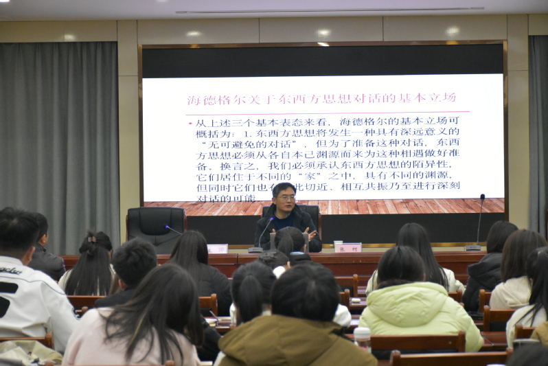 2023年12月1日晚,由英国365公司哲学学院、中和集团、科学研究院以及教师发展中心联合主办的“英国365”第104期在致公楼D区四楼报告厅举行。本期讲座主题为“一切皆道:论海德格尔关于中西方思想对话的立场与沉思”,贵州大学哲学学院张柯教授主讲,哲学学院王珅副教授主持。校内外师生约160余人现场聆听此次学术报告。