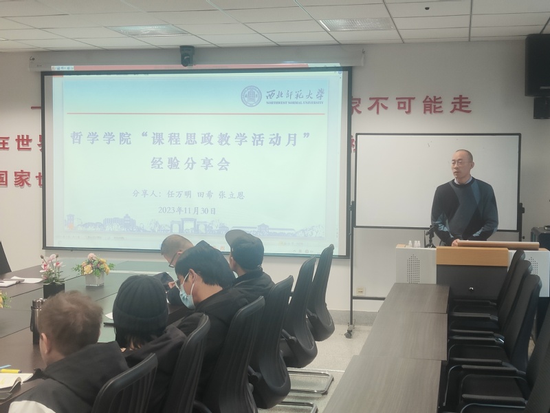 通过这次分享,极大的促进了我院课程思政建设工作的深入开展。从随后的表现来看,因受学院对于课程思政建设工作的重视,受已有课程思政建设项目成果经验的感召,2023年度哲学学院又有三位老师申报了学校课程思政师范项目,即:由胡朝都老师主持申报的课程思政师范课程《<西方哲学史>课程思政示范项目》、由杜海涛老师主持申报的课程思政师范课程《<当代英美哲学>课程思政示范课程建设项目》以及由孙圣老师主持申报的课程思政师范课程《甘肃省<科学哲学经典导读>课程思政研究》。这三项课程思政师范课程建设项目的申报将助推我院课程思政建设工作的持续发展。
